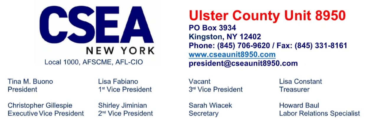 Call us- (845) 706-9620.  Or email: president@cseaunit8950.com